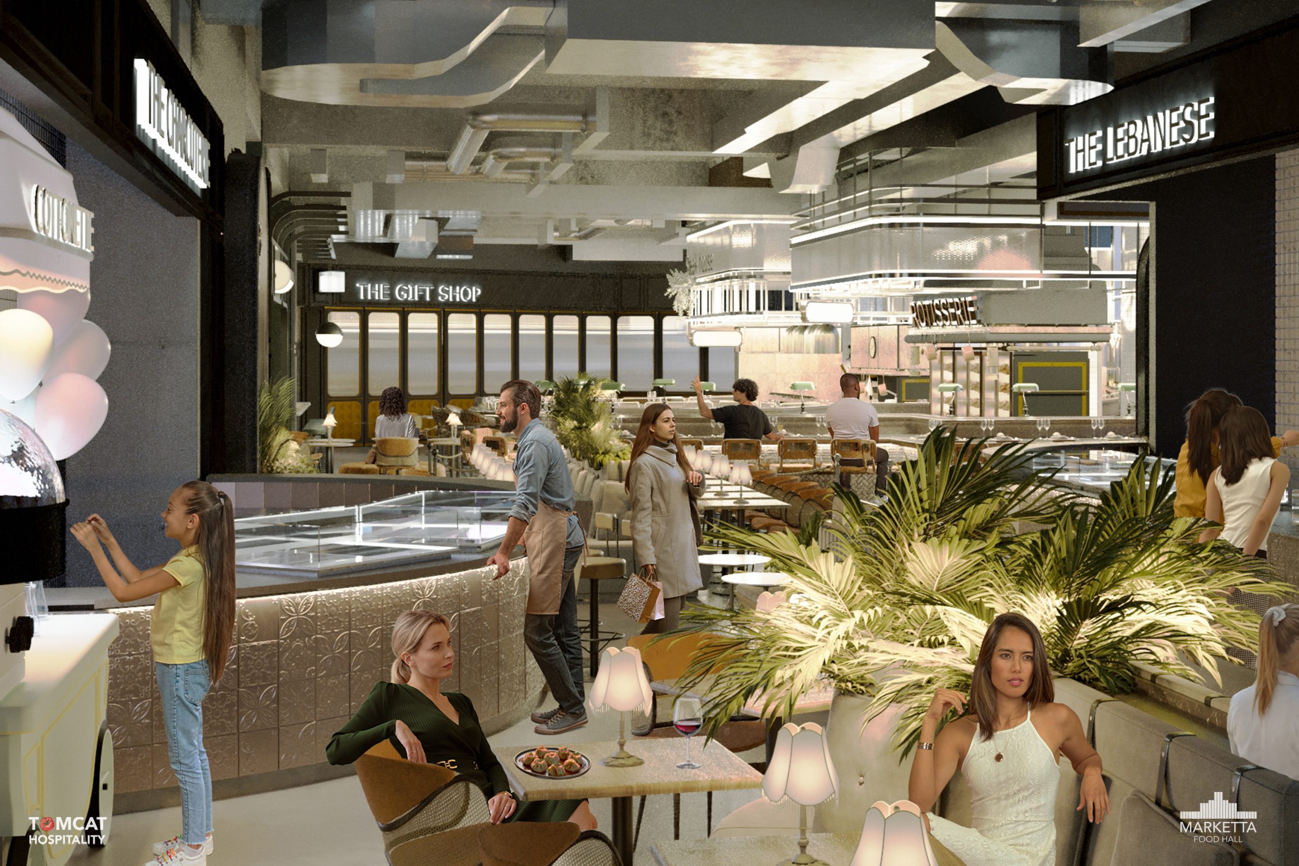Cu un mix de branduri locale consacrate, dar și concepte noi internaționale, food hall-ul va pune accent pe incluziune și calitate, aducând împreună diverse bucătării și diferențiindu-se de un food court clasic prin crearea unei experiențe elegante, comparabilă cu cea dintr-un restaurant. Cu o suprafață de 6.000 mp spații interioare și exterioare, Marketta Food Hall va include restaurante, terase cu peste 2.000 locuri, spații de co-working, un members bar de tip speakeasy, 500 de locuri de parcare și multe altele.